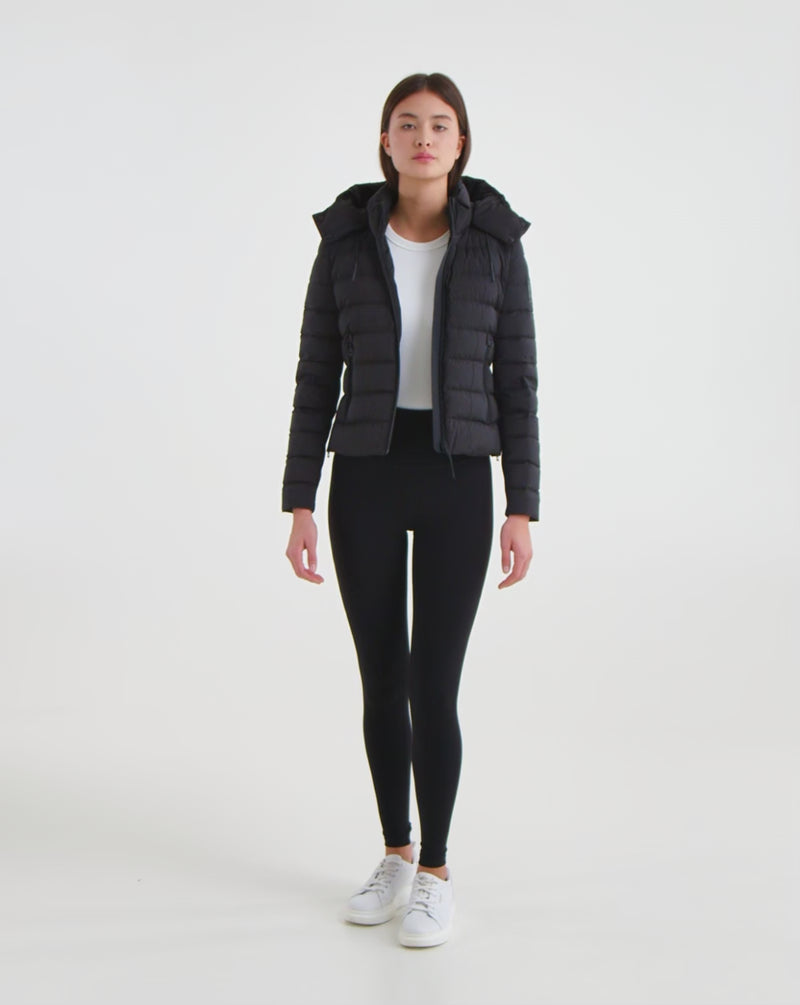The MELISSA by RUDSAK is a fitted waist-length lightweight down coat for women. With a slight peplum finish and zippered side vents, paired with double jersey panels under each arm, this puffer allows for maximum movement and comfort. Designed in our ultra-light and ultra-resistant featherlight material, it is insulated with premium RDS certified down to ensure a maximum warmth-to-weight-ratio. Perfect for cool Spring and early Fall weather, this water and wind-resistant down jacket features a removable hood, as well as waterproof zippers for extra resistance.