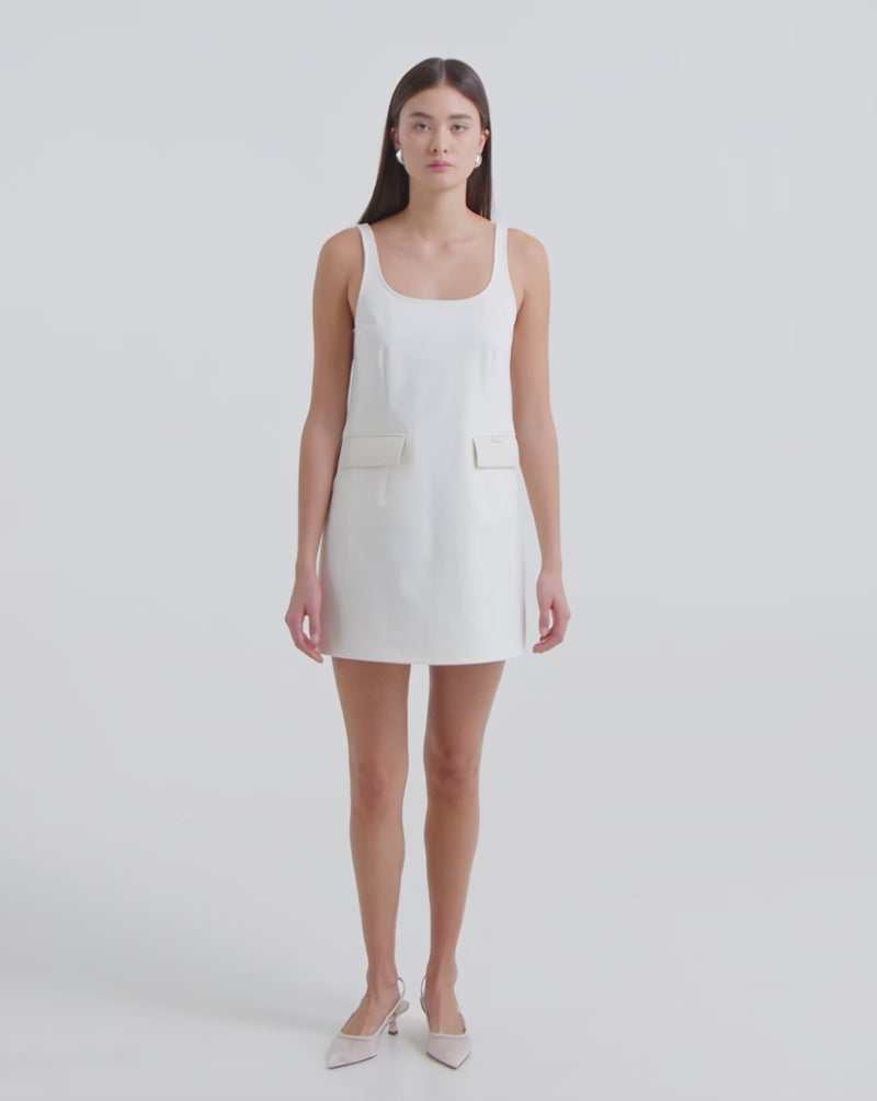 Step into effortless sophistication with the YALE by RUDSAK, a women’s mini dress that seamlessly combines tailored elegance with contemporary design. This slip-on style features structured vegan leather flap pockets, adding a modern utility-inspired edge to its sleek silhouette. Perfect for versatile styling, the YALE transitions from day to night with ease—pair it with slides for a chic daytime look or heels for evening refinement. Elevate your wardrobe with this timeless yet fashion-forward piece.